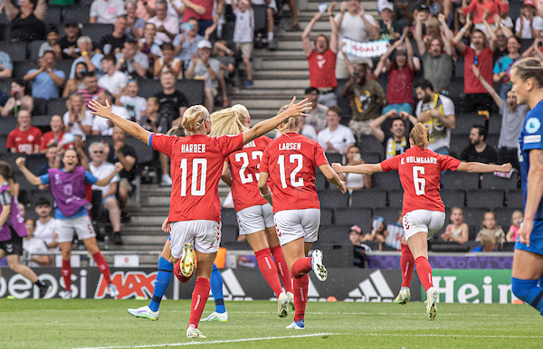 Det blev Danmark dog igen og igen. Ikke mindst i 1. halvlegs tillægstid, da Pernille Harder fortryllede de fremmødte finske tilskuere med en solotur i verdensklasse. Her afsluttede hun en omstilling ved at drible igennem to finske forsvarsspillere, der blev fulgt op med en velplaceret afslutning. Dermed gik Danmark til pause foran med 0-3.