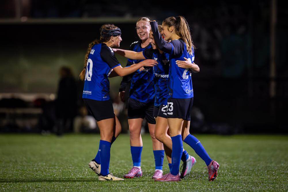 HB Køge jubel efter en scoring af islandske Emilia Oskarsdottir i pokalsejren på 0-6 over FC København. Foto: HB Køge Women