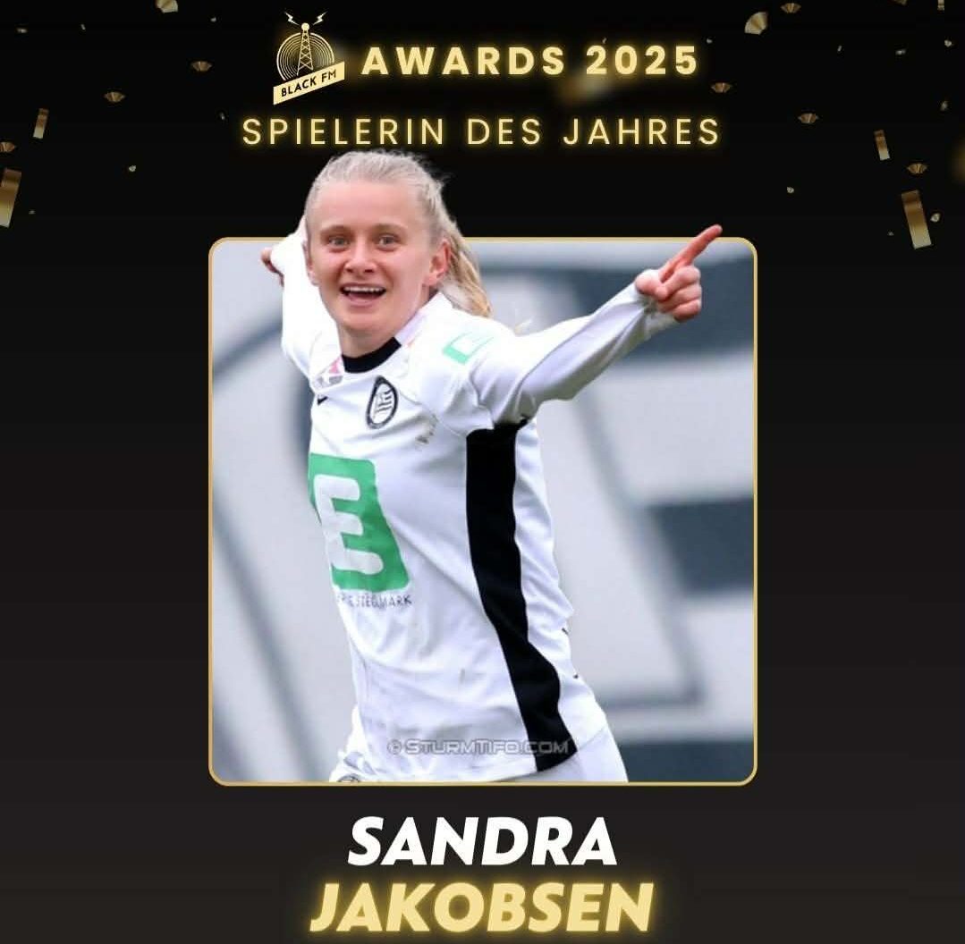 Sandra Jakobsen er blev kåret til året spiller 2025 i den østrigske klub Sturm Graz. Prisen er stemt hjem af klubbens fans, og hæderen understreger den markante rolle, hun har spillet for holdet i den bedste østrigske Kvindeliga, Admiral Frauen Bundesliga.