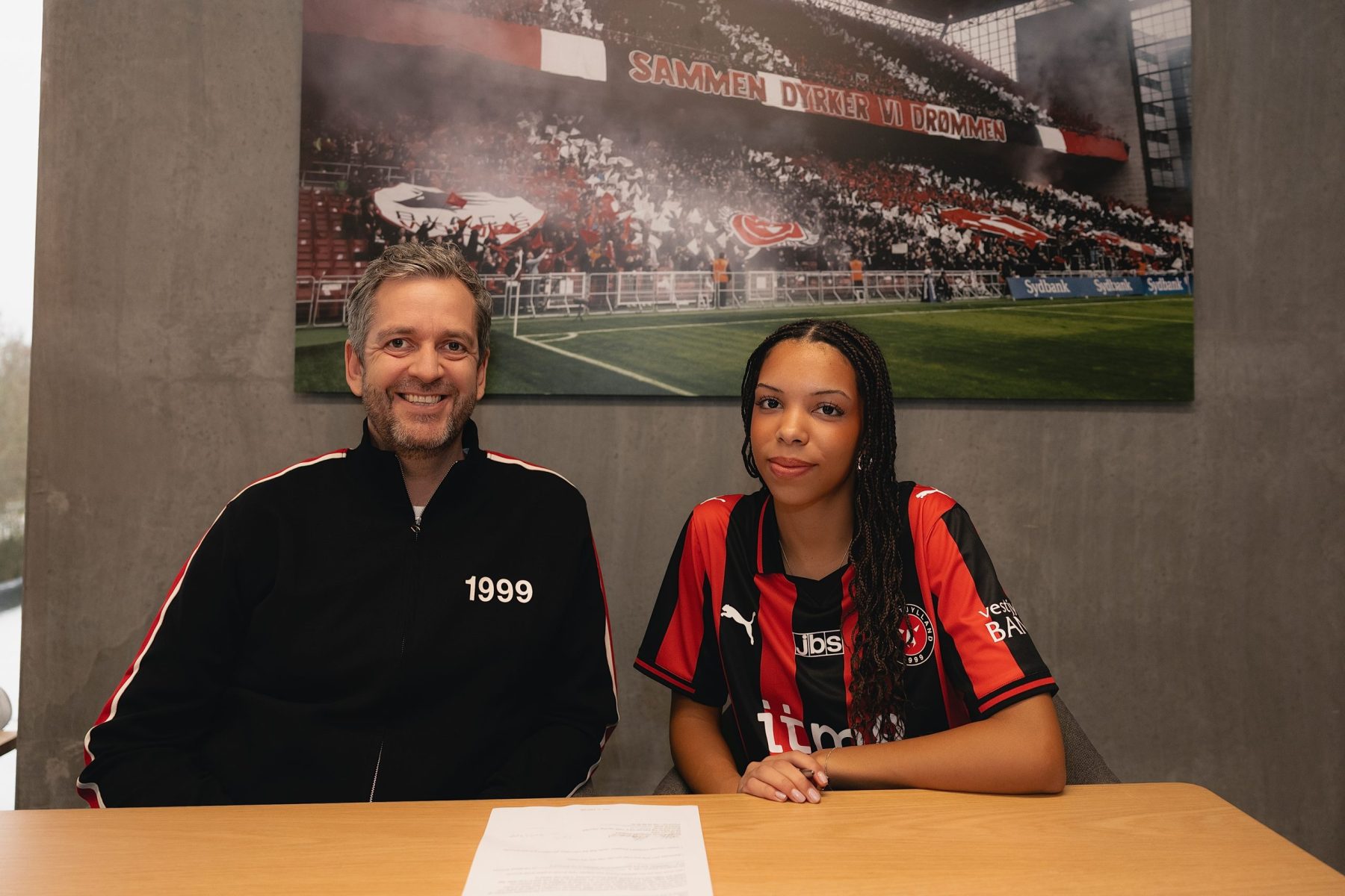 Jenny Ngounou underskriver sin kontrakt med FC Midtjylland. Foto: Susan de Klerk.