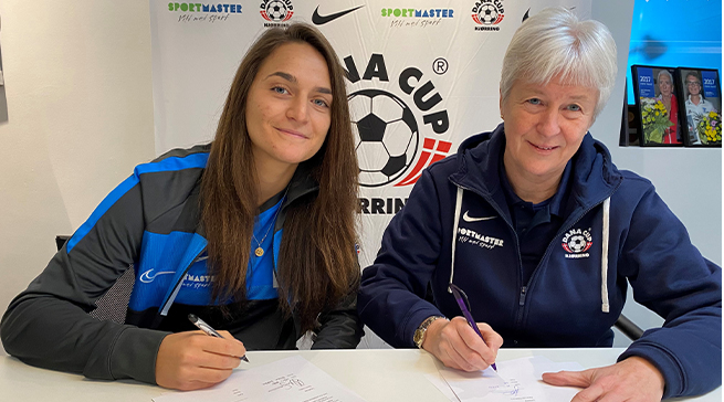 Elena Sadiku i sin tid hos Fortuna Hjørring i selskab med Jette Andersen. Foto: Fortuna Andersen