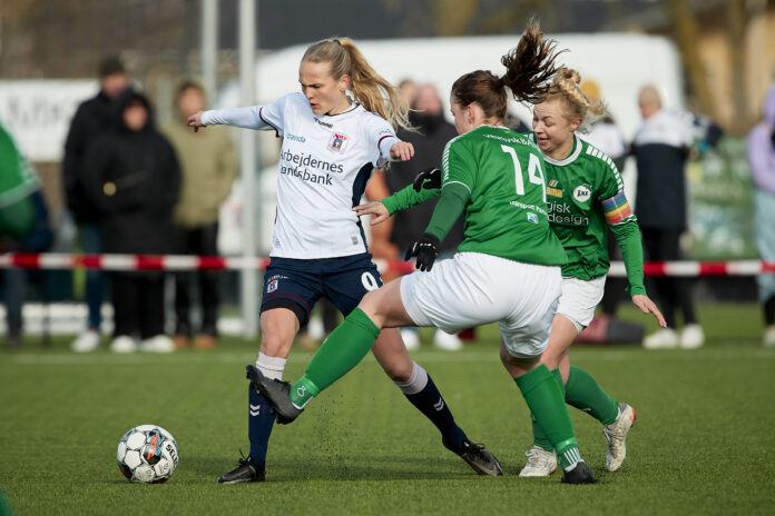 JAI Aarhus-spillere i aktion mod AGF i KvindePokalen i marts 2023. Foto: Ole Nielsen